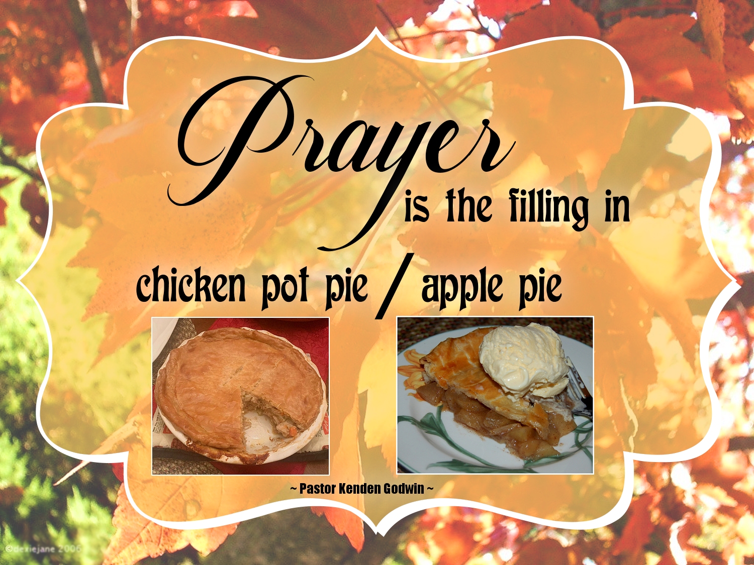 May our days be filled with Prayers and our tummies with chicken pot pie and apple pie. π₯§ππβ€οΈ